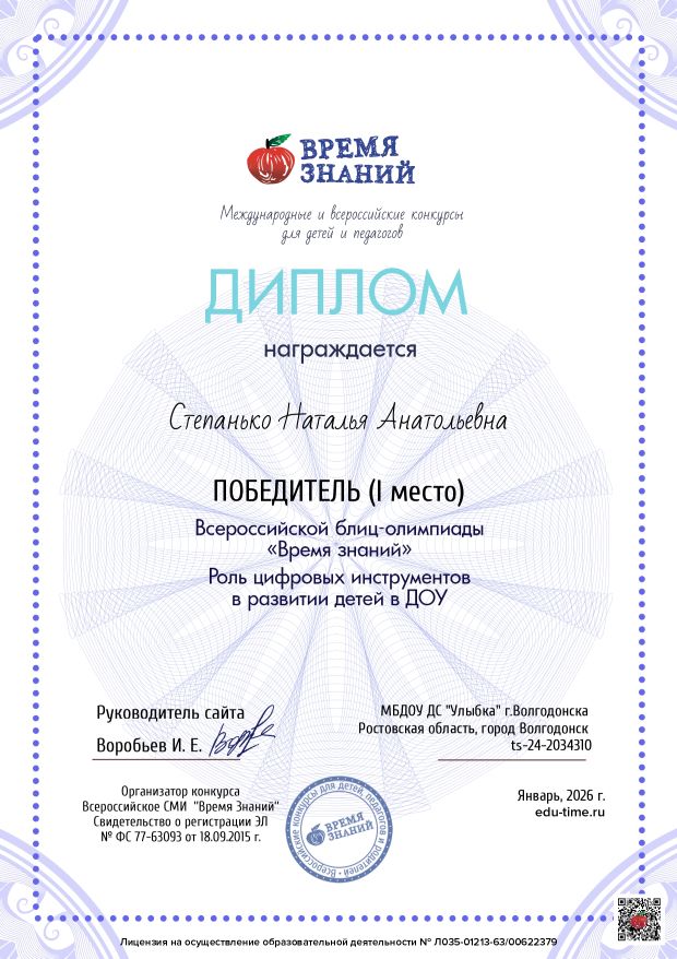 Всероссийская блиц-олимпиада «Время знаний» на тему «Роль цифровых инструментов в развитии детей в ДОУ»