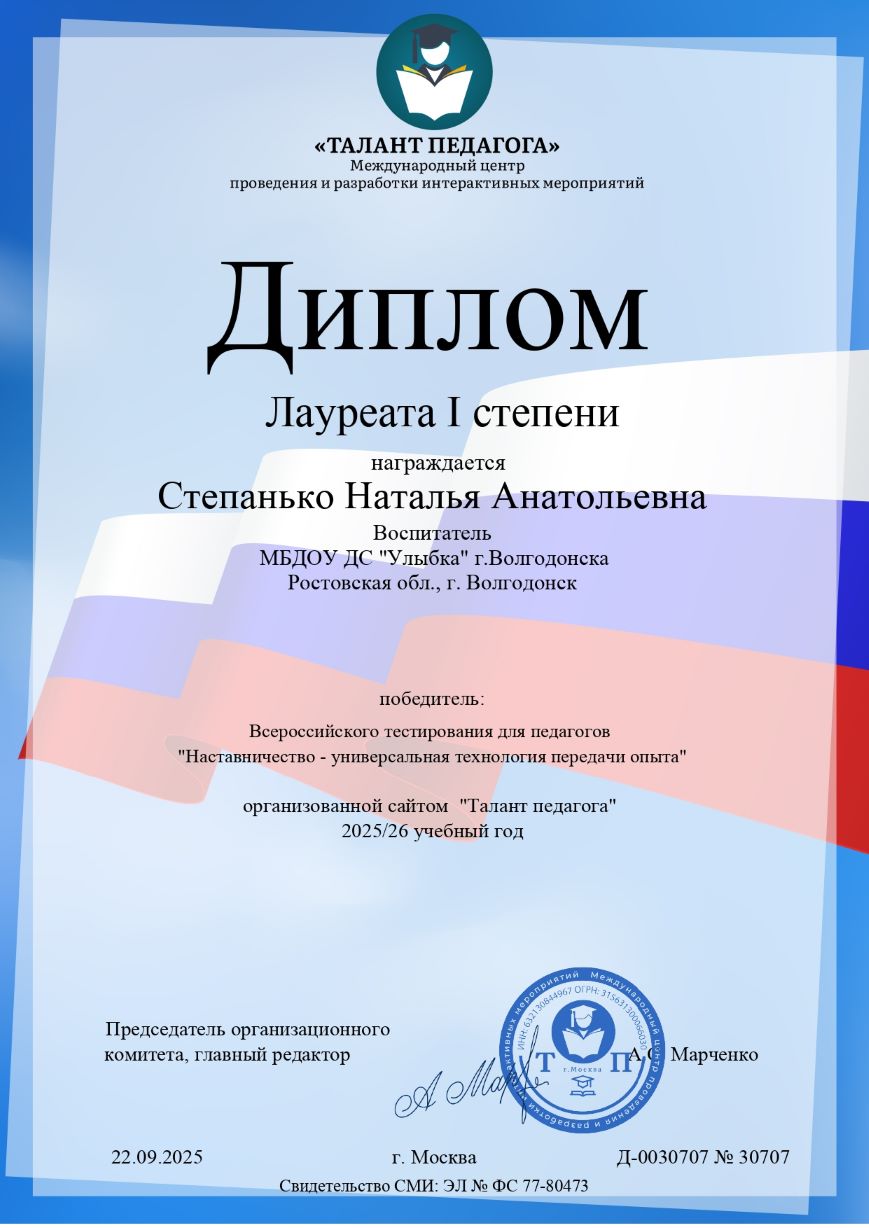 Всероссийское тестирование для педагогов «Наставничество – универсальная технология передачи опыта»