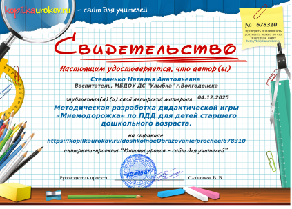 Методическая разработка дидактической игры «Мнемодорожка» по ПДД для детей старшего дошкольного возраста [Электронный ресурс] // 2025. URL: